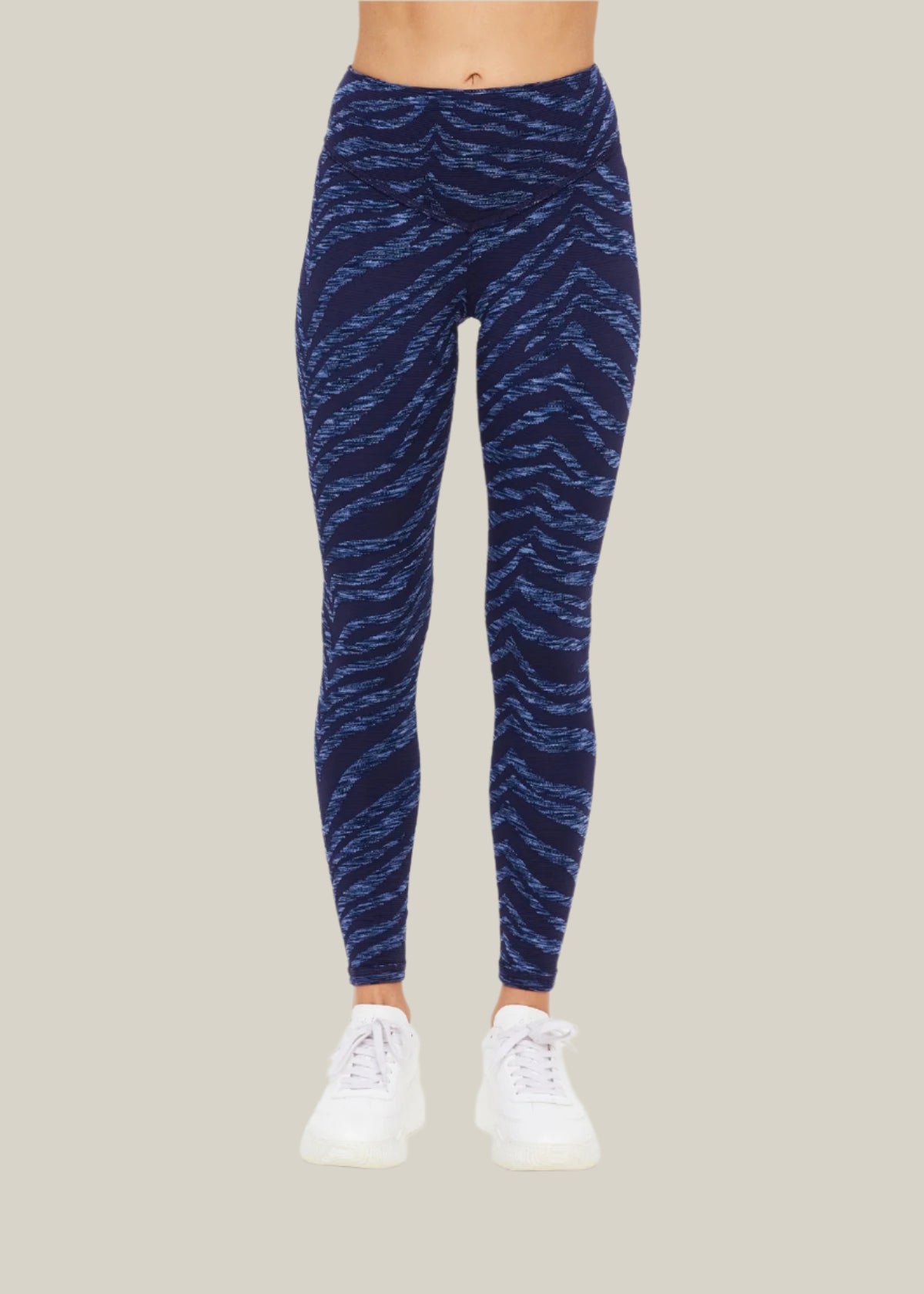 Leopard print leggings worn by a person on a white background