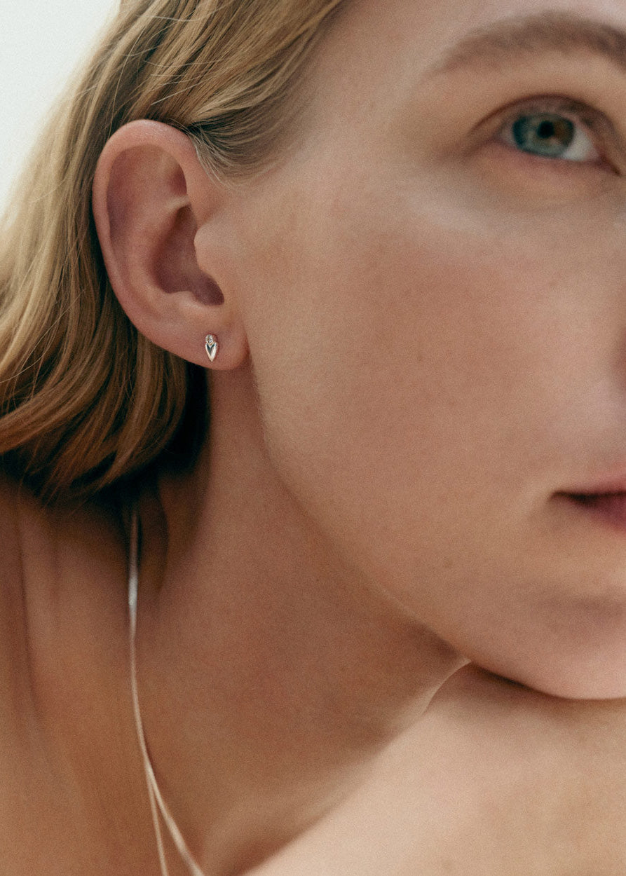 The Abode Heart Studs feature an organic heart silhouette accented with a subtle white topaz, offering an understated touch of sparkle. Crafted from polished sterling silver, these minimalist studs are designed for effortless, everyday wear.