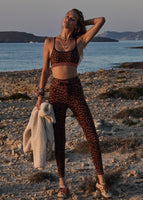 the malawi badu bra features a flattering scooped front neckline with supportive crossback straps for easy movement. printed in the bold malawi leopard and finished with contrast orange and navy gingham underbust detailing, it balances performance, comfort and standout style.