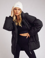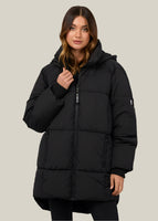 Remi Luxe Puffer features a recycled poly blend fabric, luxe puffer fill, All About Eve toggles, removable hood and elasticated rib cuffs in the perfect longline fit. Pair back with our eve athletics collection or over denim for the perfect everyday look.