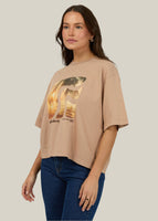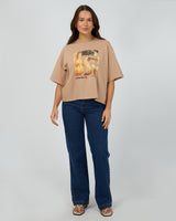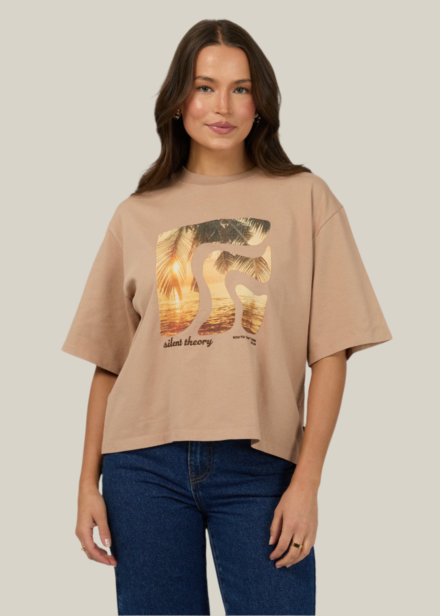 The Sunset Tee by Silent Theory is your new off-duty staple. Featuring an oversized, cropped silhouette in a versatile taupe hue, it’s finished with a bold front graphic for that lived-in, effortless look.
