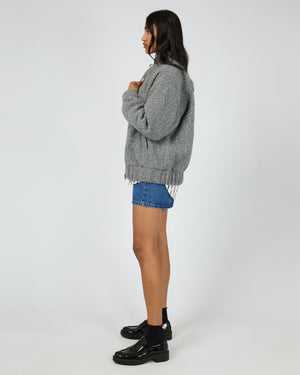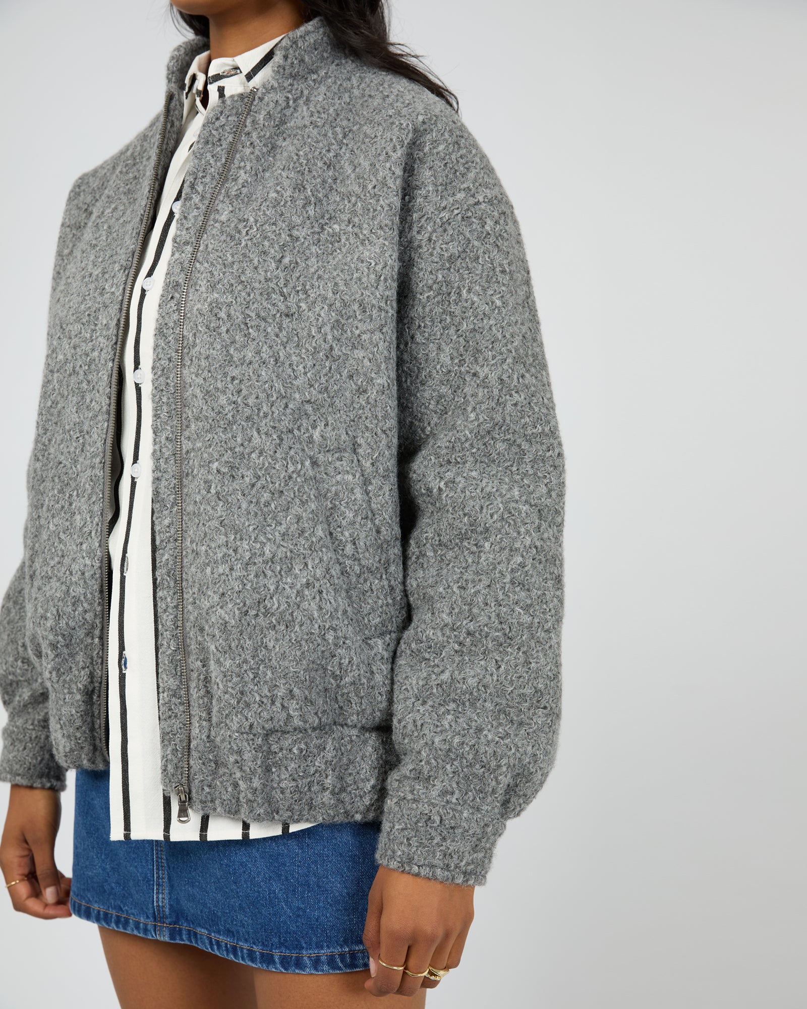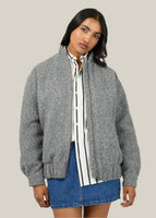 The Tahlea Bomber Jacket by All About Eve is a classic, effortlessly cool outerwear piece designed for versatile, everyday wear. Crafted in a soft, muted grey, it features a relaxed silhouette with ribbed trims, zip-through front, and functional side pockets. This design makes it ideal for layering, while the neutral tone pairs seamlessly with both casual and elevated outfits.