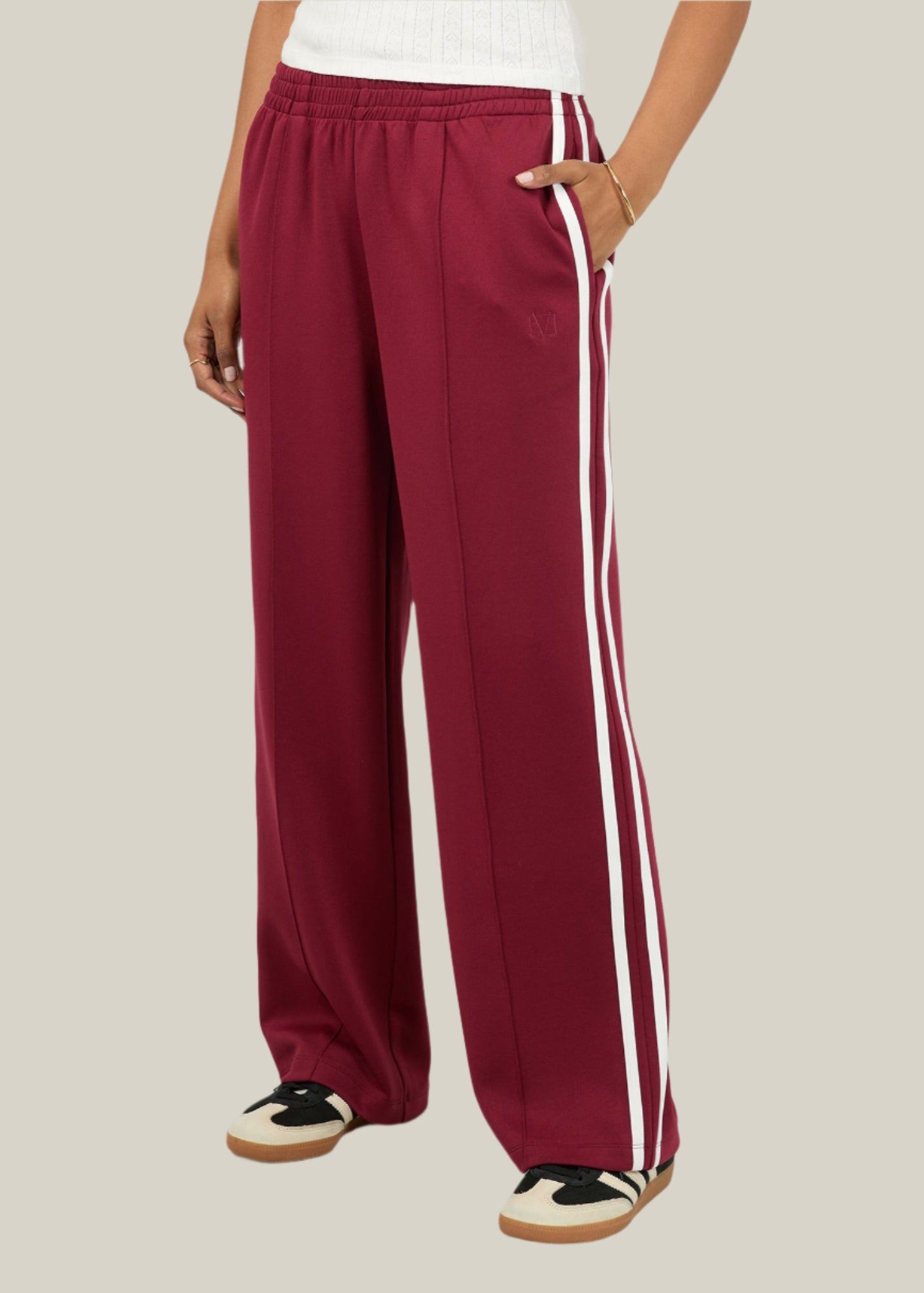 Elevate your off-duty look with the On The Daily Track Pant, where sporty meets sleek. Featuring contrast binded stripes down the sides, these track pants bring a fresh, athletic edge to your everyday style.