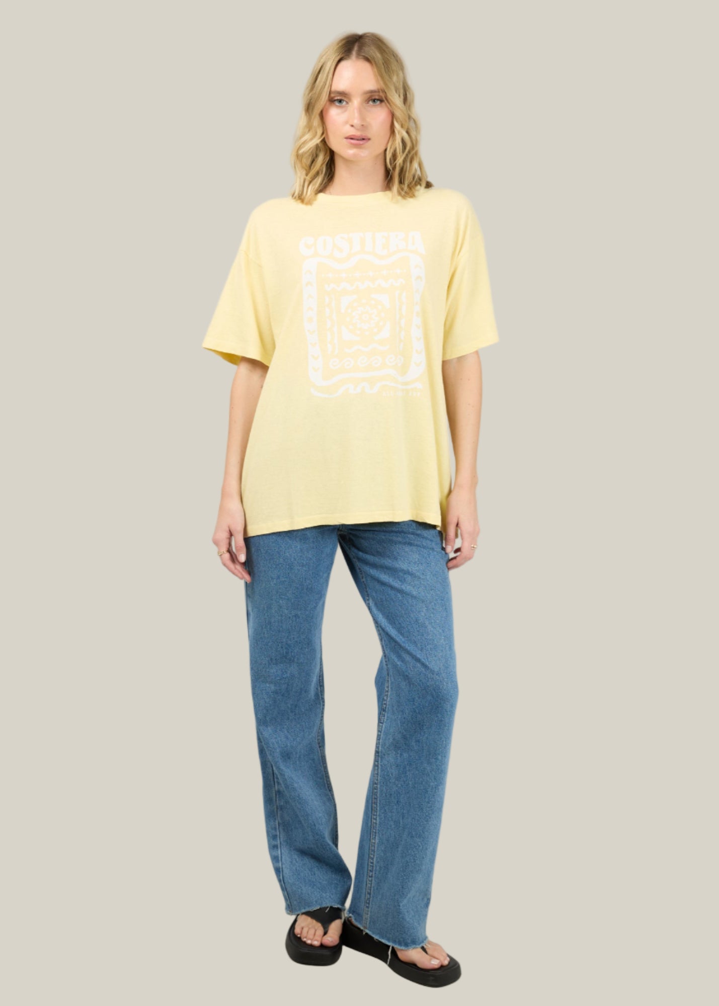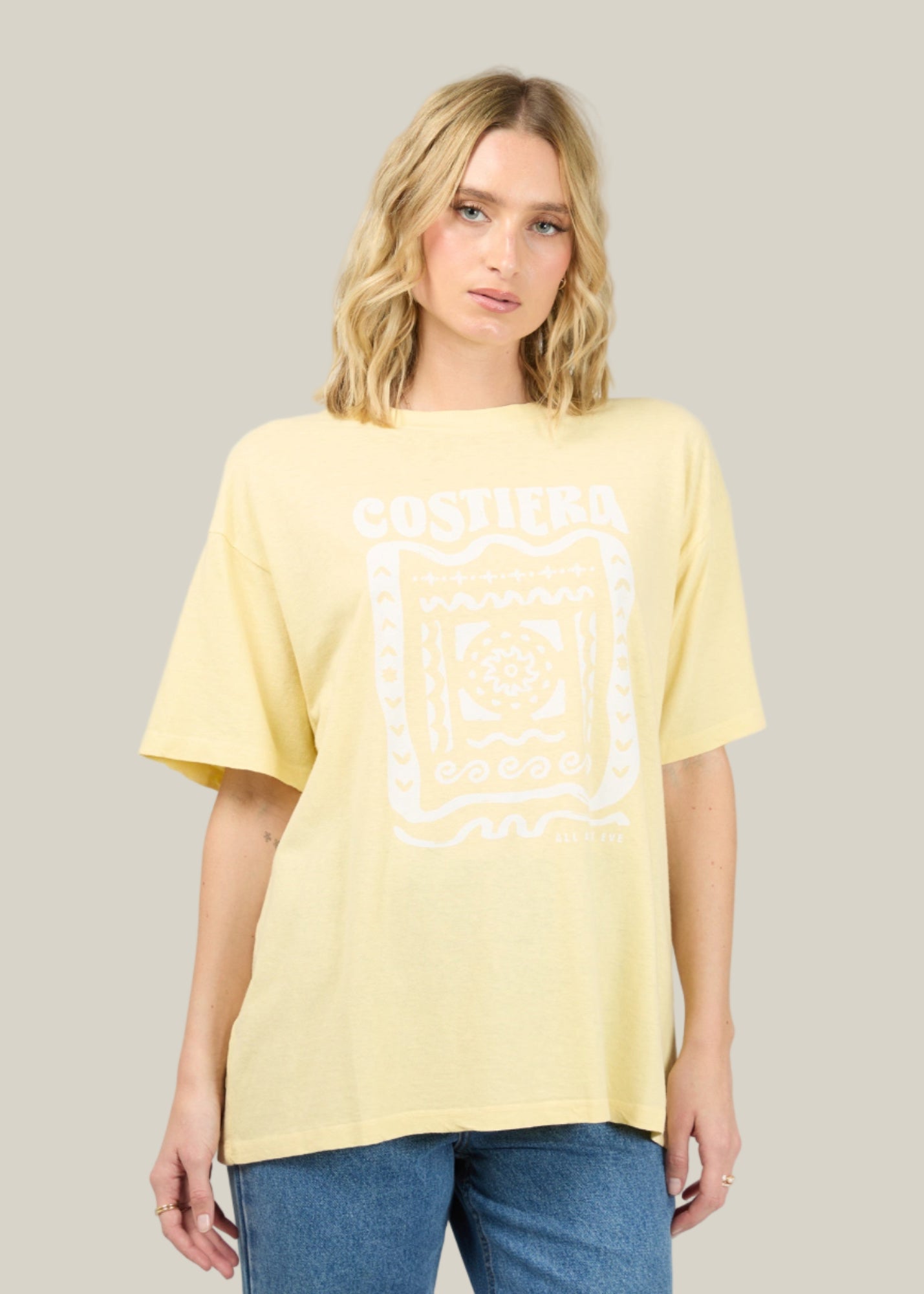 Add a pop of sunshine to your everyday edit with the Costiera Relaxed Tee in Yellow. Designed with comfort and effortless style in mind, this tee is made from soft, breathable cotton and features a relaxed silhouette with a bold front graphic inspired by coastal living.