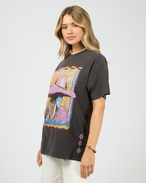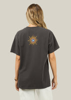 Effortlessly cool and endlessly wearable. The Calamity Sun Relaxed Tee in washed black is your go-to staple for laid-back days and styled-up activewear. Made from cotton with a lived-in feel, this tee features a relaxed, boxy silhouette, drop shoulders, and a subtle garment wash for that vintage edge and unique graphic print.