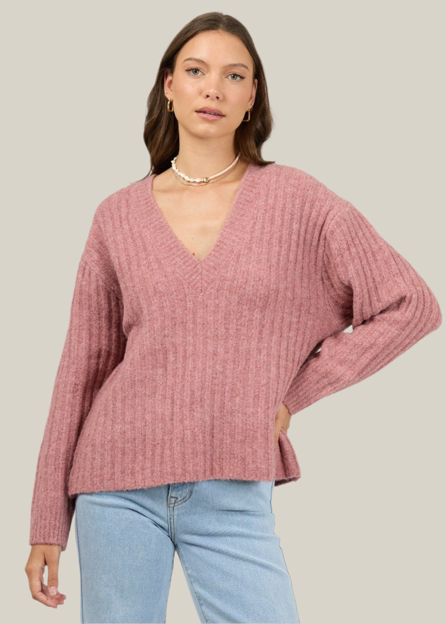 Effortlessly chic, the Clara Knit in Quartz is your new layering essential. Crafted from a soft knit, features a flattering V-neckline, relaxed fit, that elevateseveryday feel. — perfect for pairing with , wide-leg pants, or tights those in-between weather days.