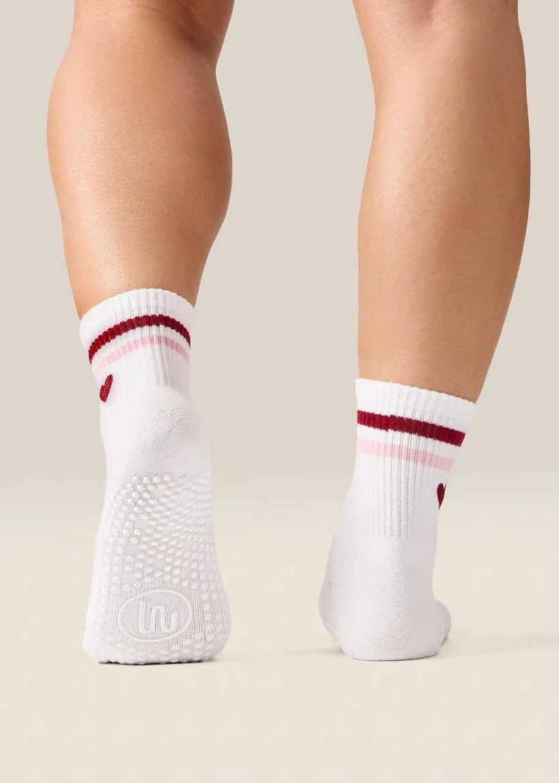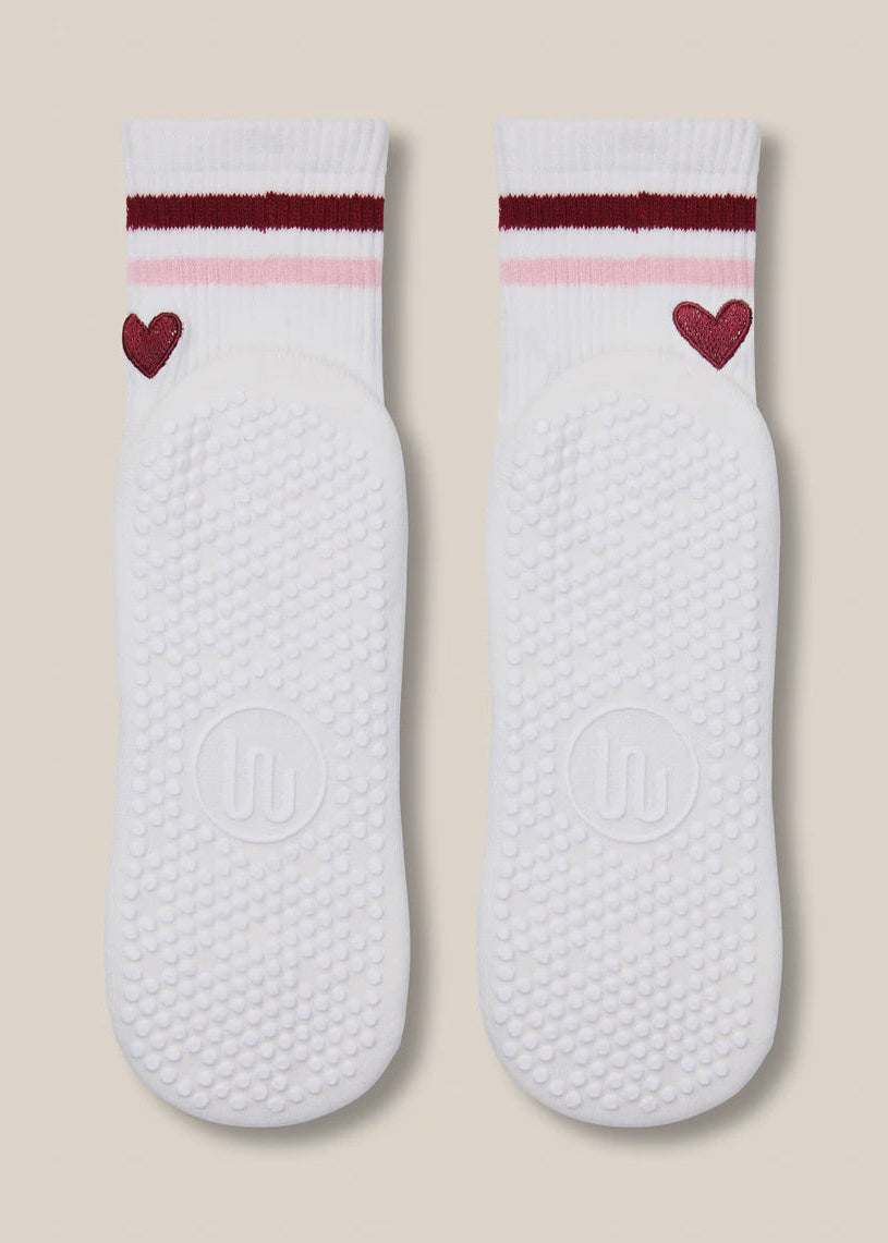 Made with Love brings playful heart details, soft stripes and delicate embroidery to these feel-good Crew Grip Socks — easy to gift and even easier to love. Designed to blend style, comfort and performance, they’re a must-have for studio sessions and cosy days at home.