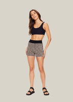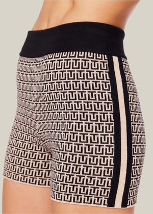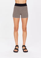 Introducing The Upside's Castilla 3" Knit Shorts in Pebble—a perfect blend of comfort and style for your active lifestyle. Crafted from an organic cotton blend knit jacquard, these mid-rise shorts feature a soft elasticated waistband and contrast black and tan side panels adorned with the signature 'TU' monogram design. Ideal for yoga, Pilates, or casual outings, these shorts offer both functionality and fashion. Please refer to studio images for the most accurate colour representation.