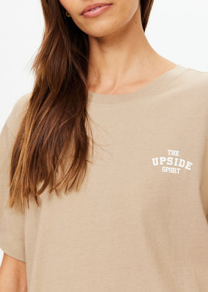 Featuring a neutral tan hue, an oversized silhouette, and a bold puff print 'The Upside Sport' logo at the chest, it’s the perfect throw-on for pre- or post-workout styling. Finished with a soft rib neckline for all-day comfort.