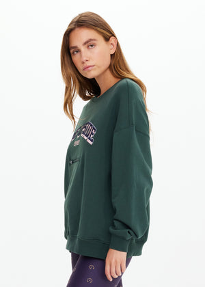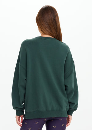 - Crew shape in organic cotton loopback in dark Agave green